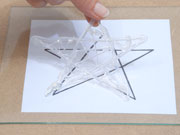 2 ) Coloca el rectángulo de vidrio y con la pistola de silicona (o pistola encoladora, según donde vivan) dibuja la estrella siguiendo el diseño.